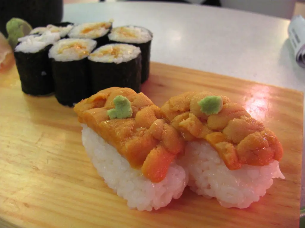 海膽壽司(前)、海膽卷(後)
