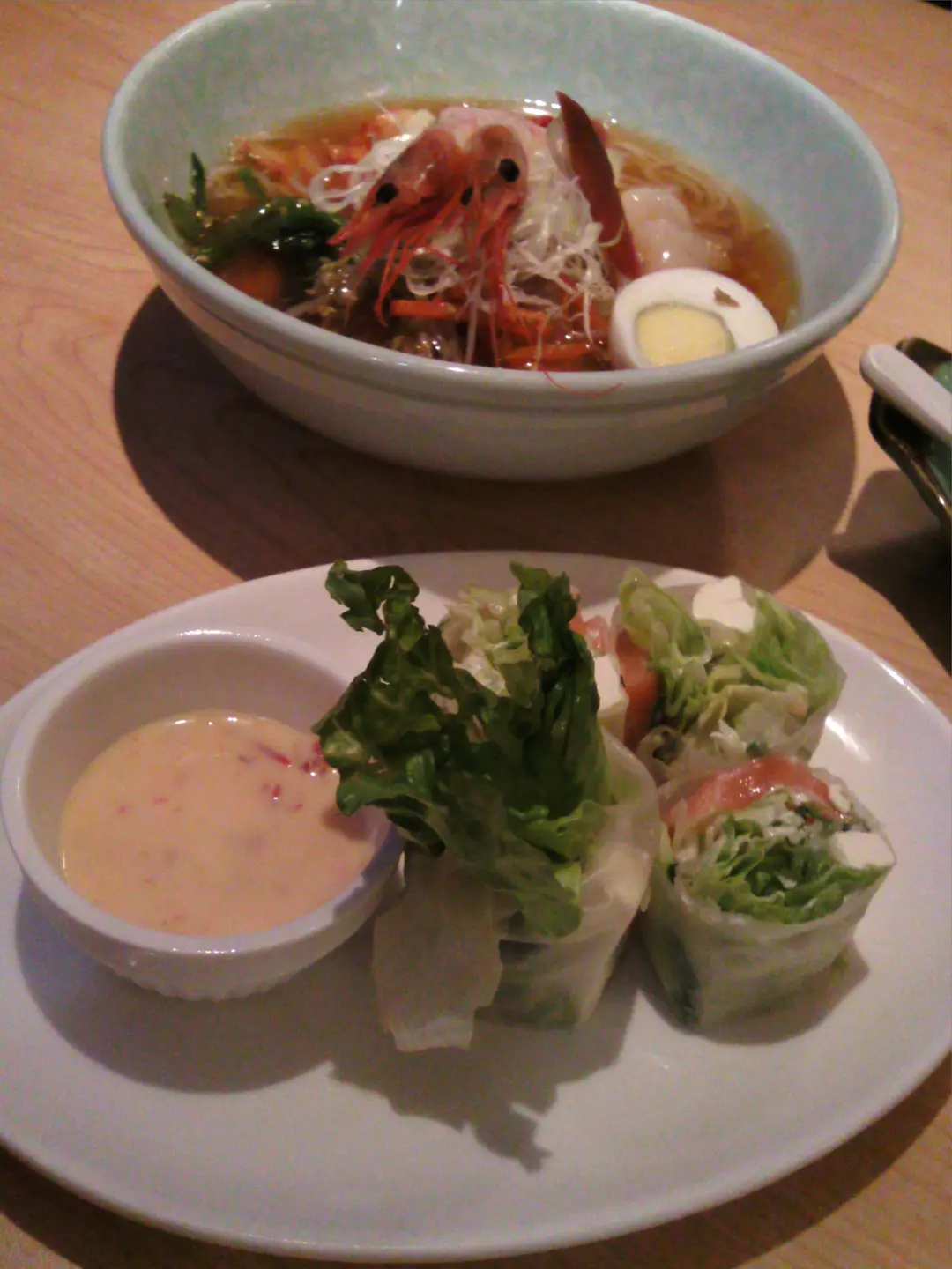 海鮮刺身冷麵:非常好食。清甜爽口三文魚野菜卷:多材料又有口感。