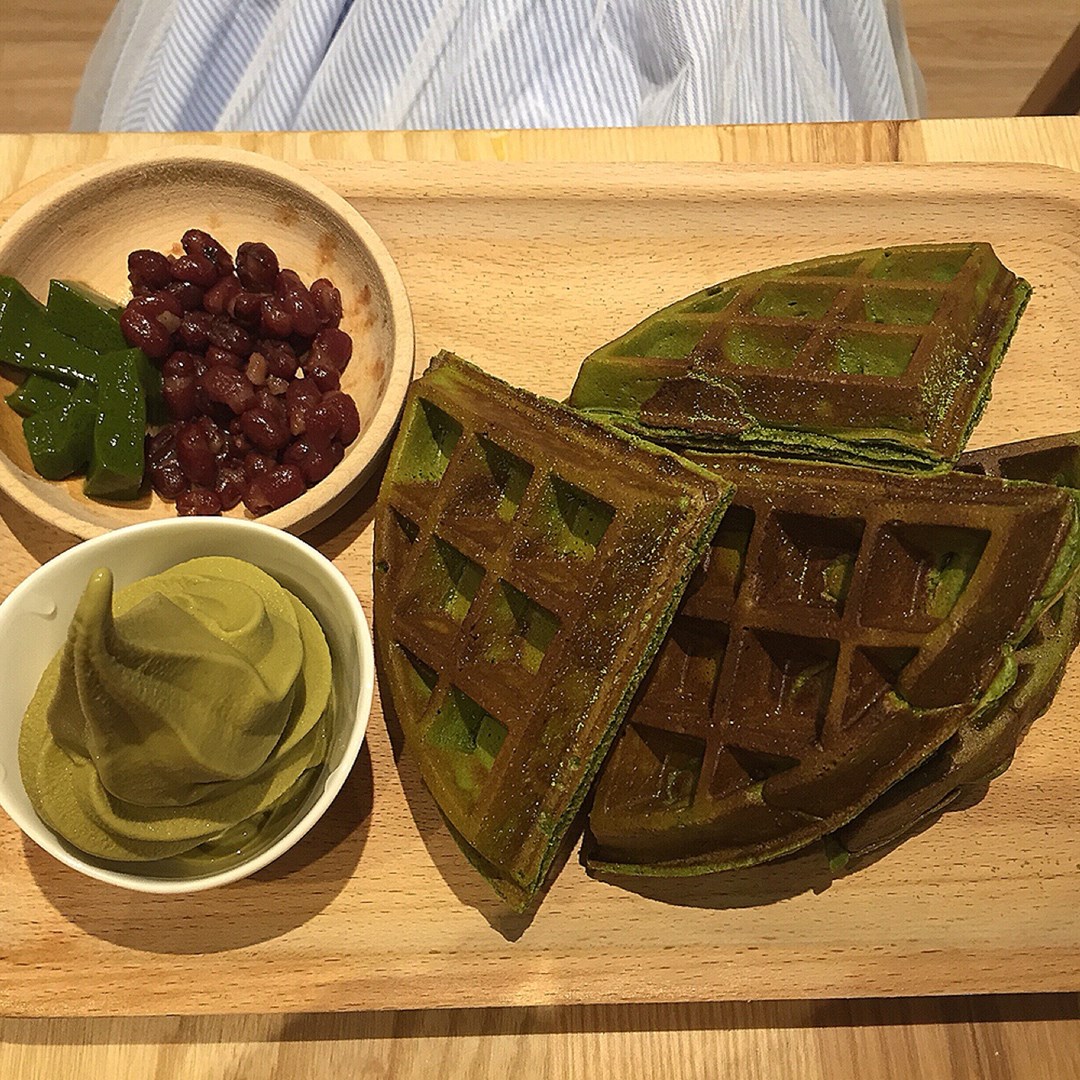 抹茶鬆餅配焙茶霜淇淋