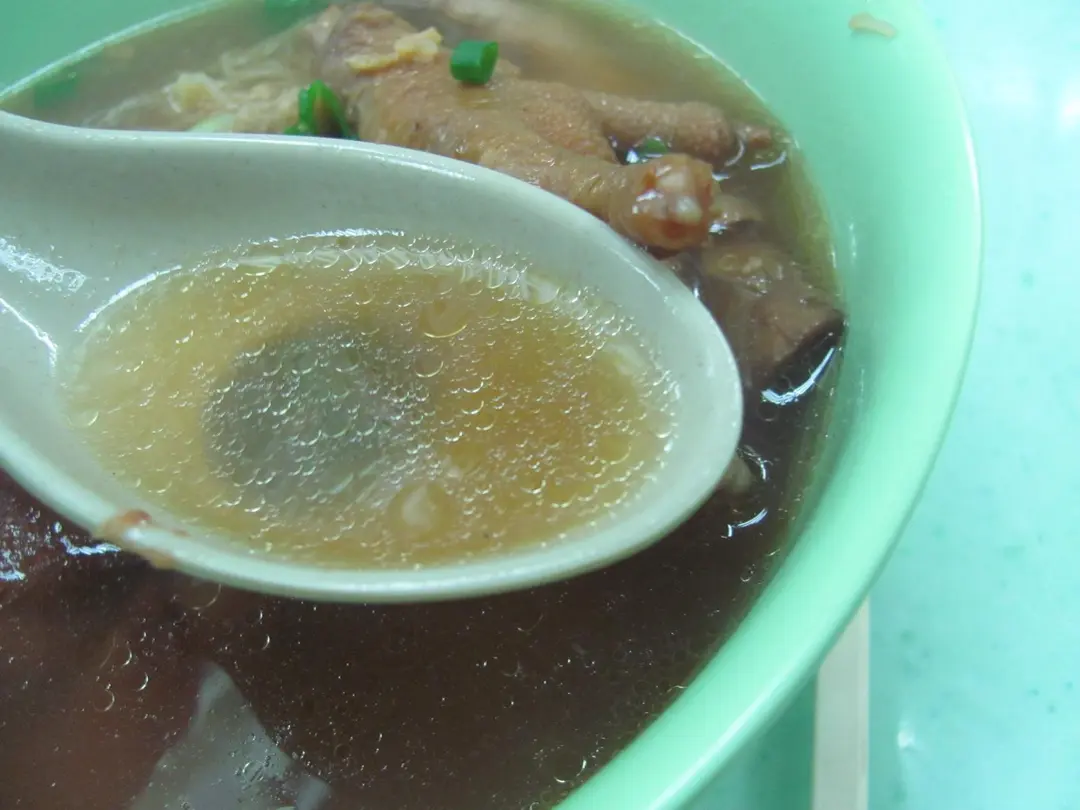 湯的色水是非常深啡色,面層有頗厚的油份在湯面上