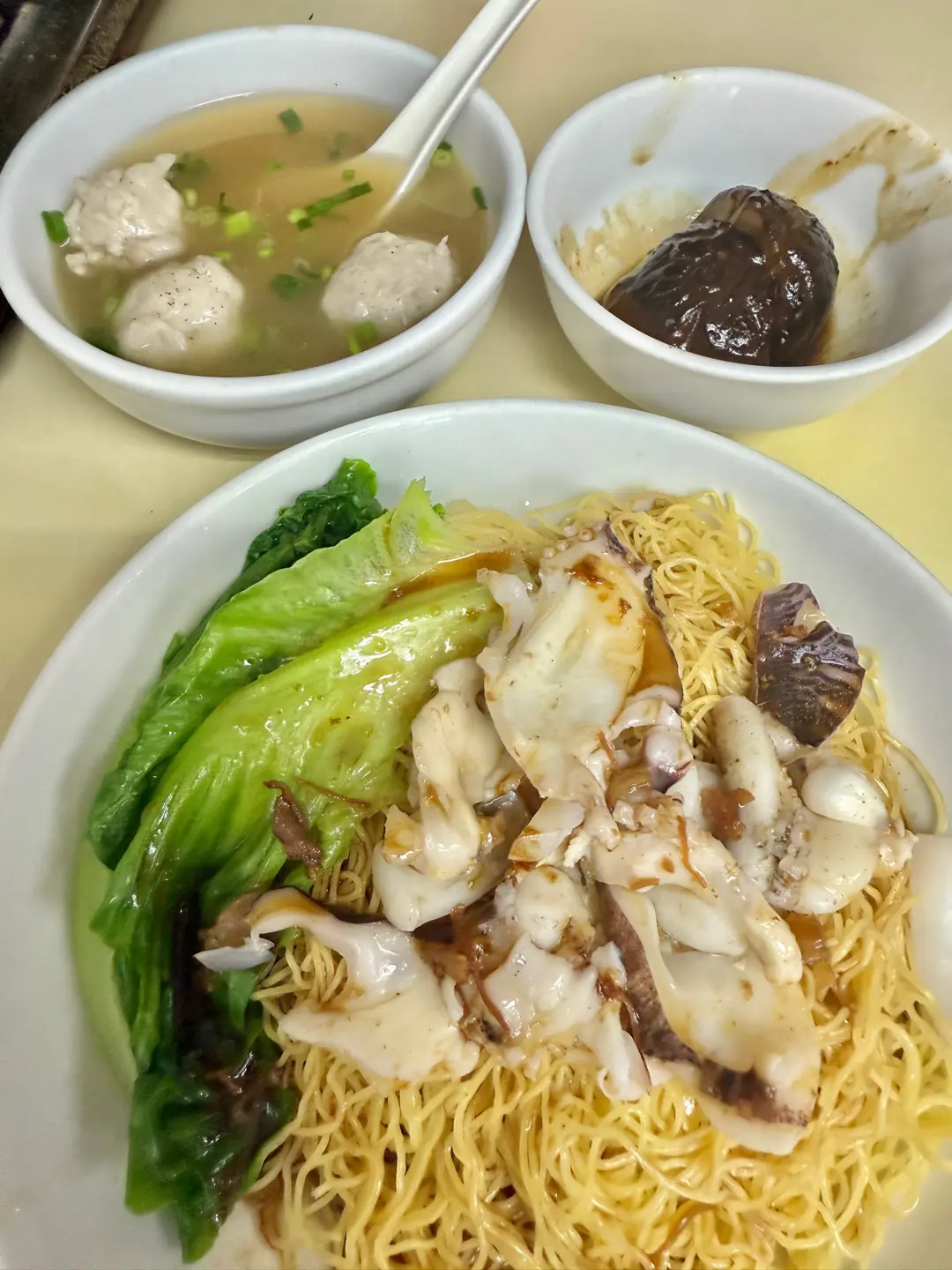 胡椒丸+墨魚撈麵 花菇
