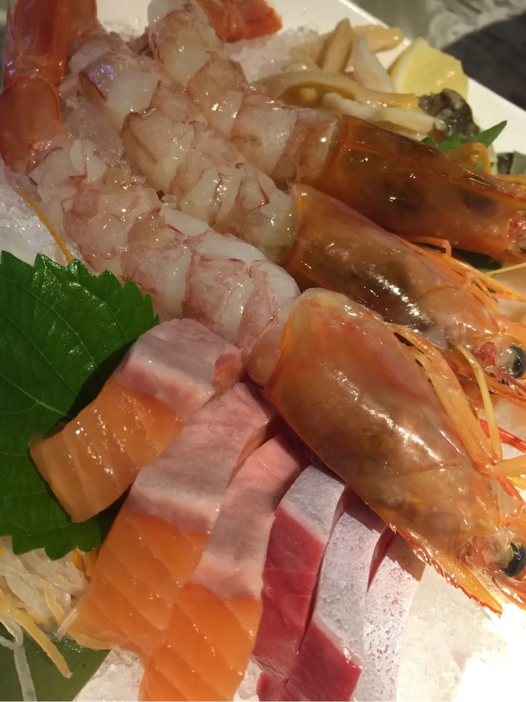 大赤蝦 、帶子刺身三文魚、赤背、象拔蚌刺身