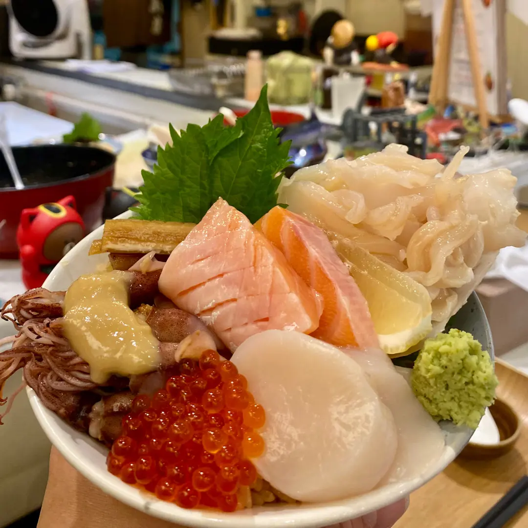 春の丼(白象拔蚌、螢光魷魚、三文魚籽、三文魚、帶子)!😊😋