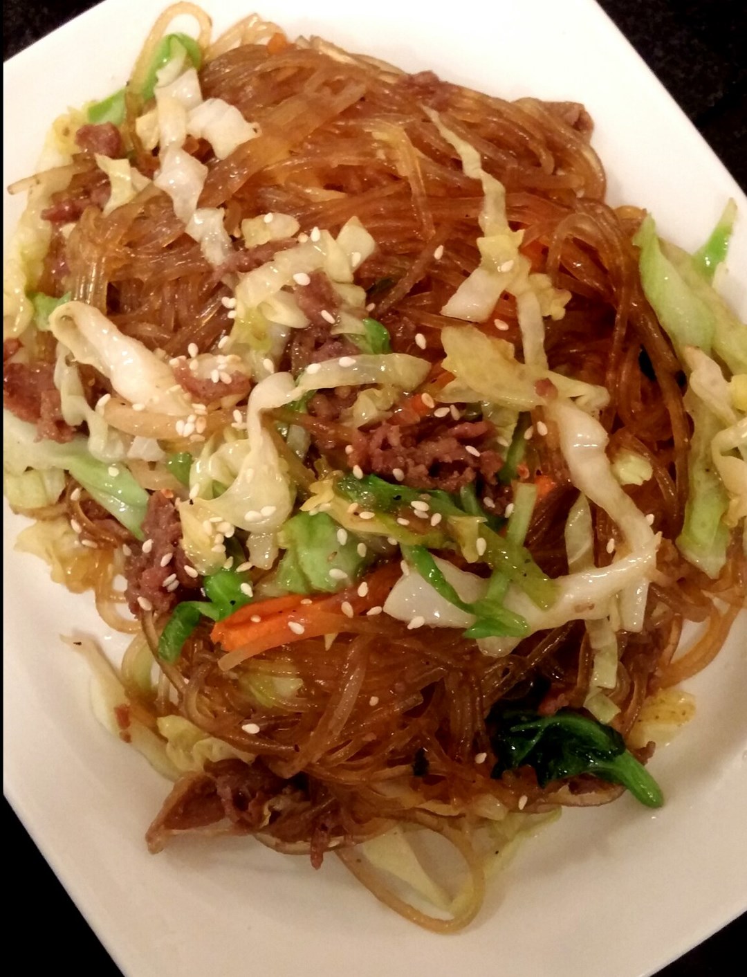 potato starch noodles with beef and vegetables
