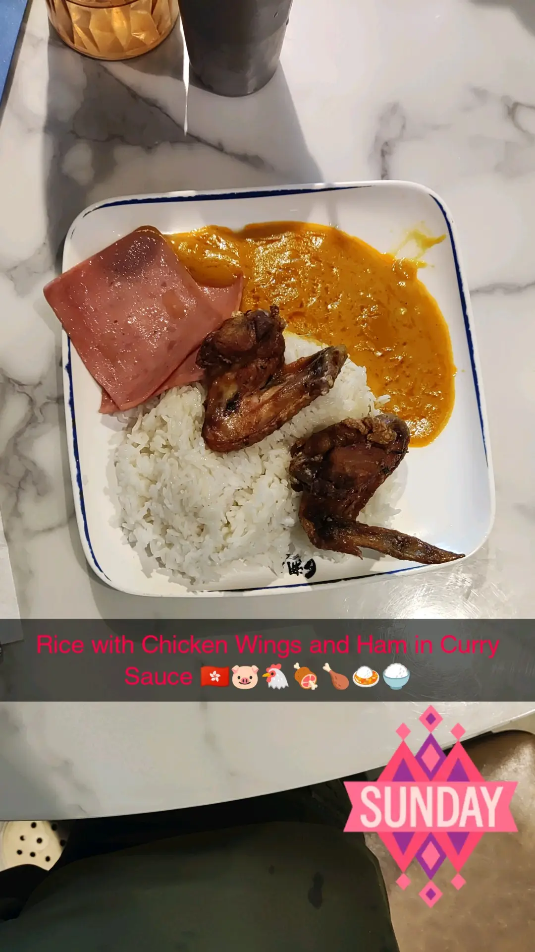 Rice with Chicken Wings and Ham in Curry Sauce 🇭🇰🐷🐔🍖🍗🍛🍚🍽️