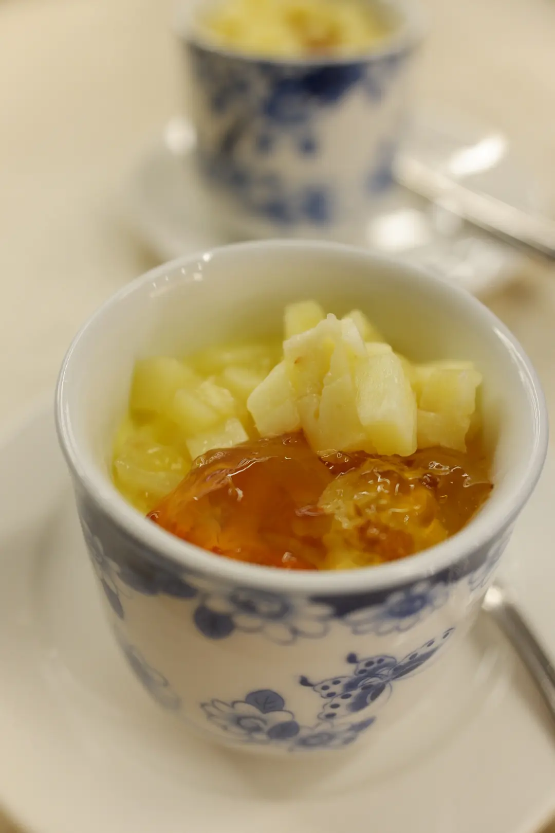 焦糖燉蛋配桃膠鮮果肉