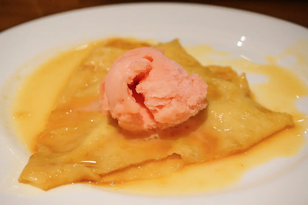 法式香橙薄餅配血橙雪葩