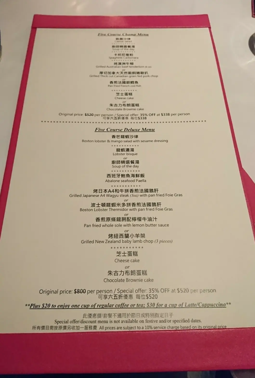 • 赚取之「亚洲万里通」里数将根据餐饮与膳食消费,包括服务费、税项及小费的总和而计算。