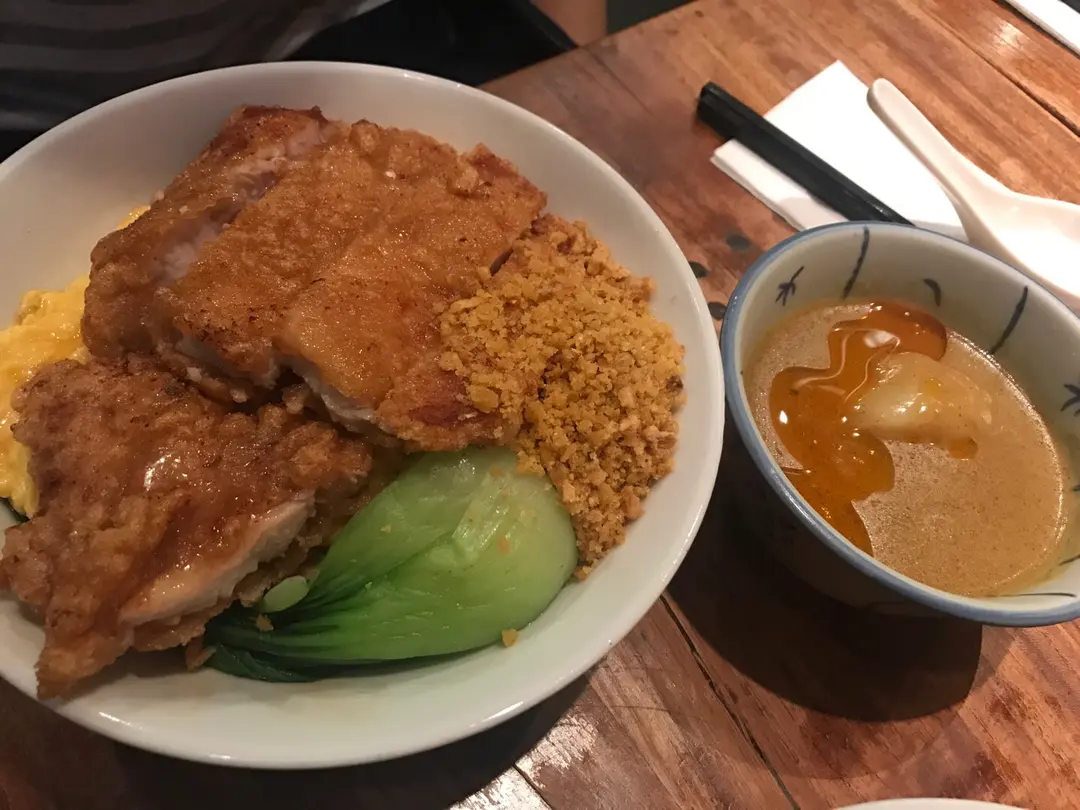 咖喱豬扒撈粗麵配炒滑蛋