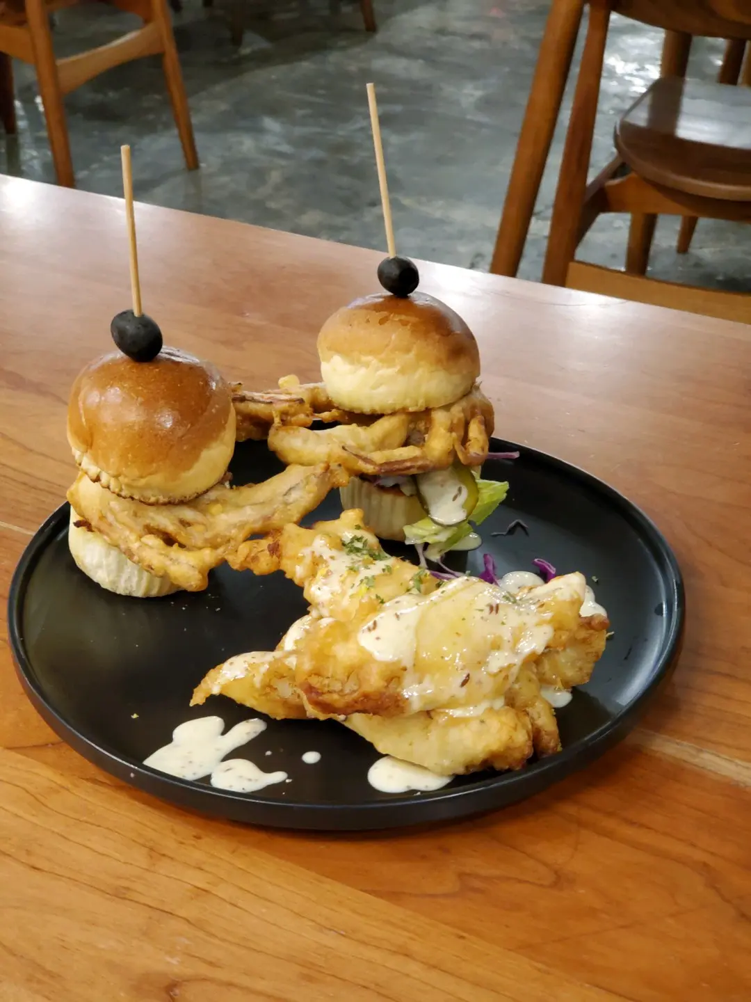 軟殼蟹漢堡配炸魚