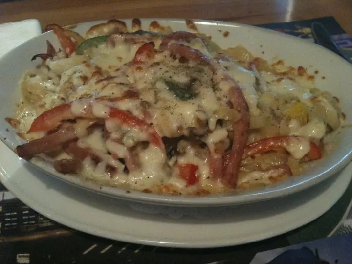 焗蘑菇火腿什椒闊條麵
