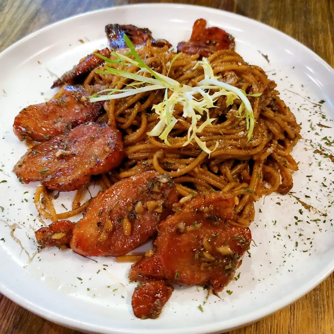 煙鴨胸香蒜炒意大利粉