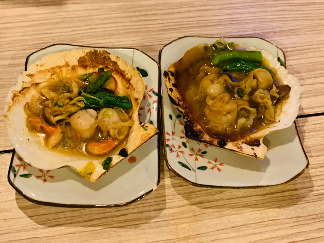 海膽帆立貝殻燒,松葉蟹膏帆立貝殼燒