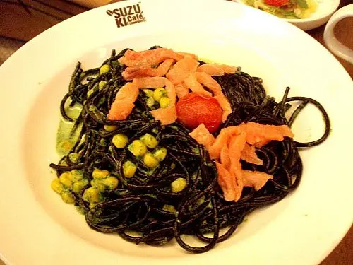 煙三文魚菠菜墨汁意粉