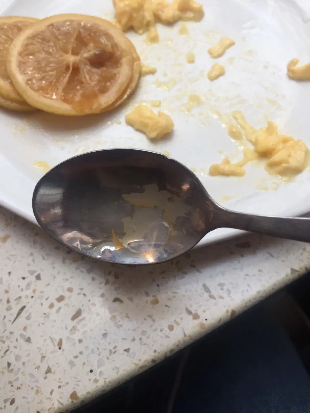 檸檬茶嘅匙全部係乾咗嘅奶茶漬😡😡😡