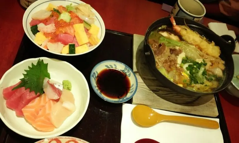 魚生飯加蝦天婦羅牛肉鍋