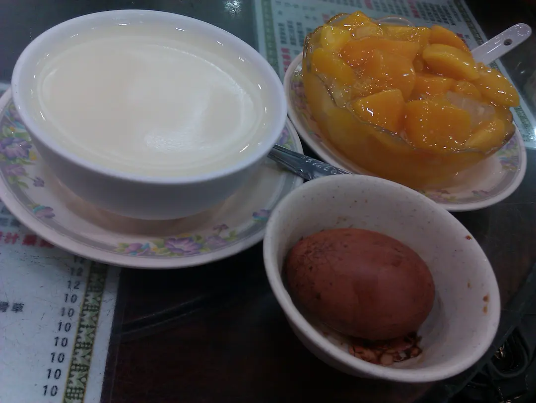 燉奶同芒果大菜撈+茶葉蛋