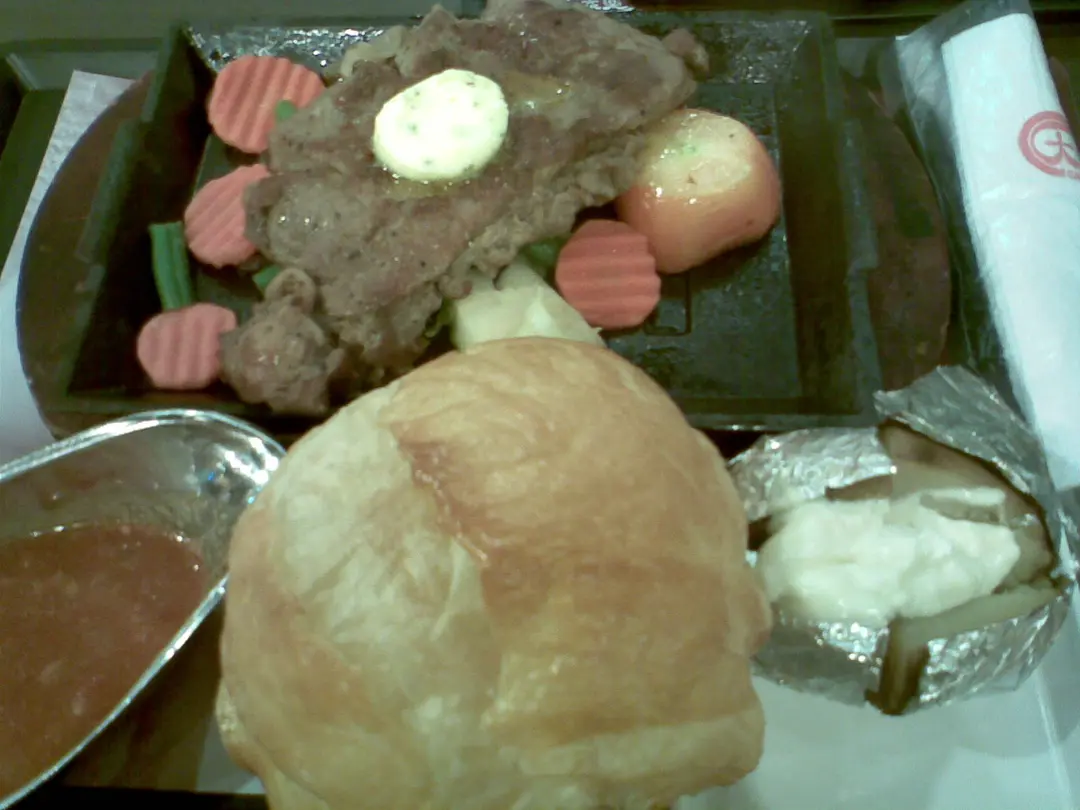 爵士牛扒 . + 魚周酥皮湯