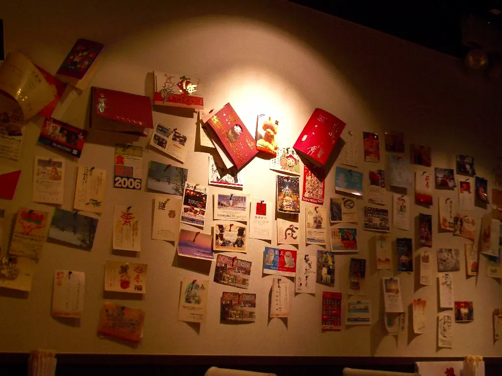 牆的一角貼滿了postcard
