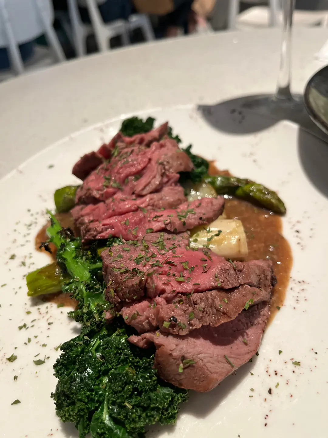 燒牛柳跟烤蘆筍配紅酒野菌汁