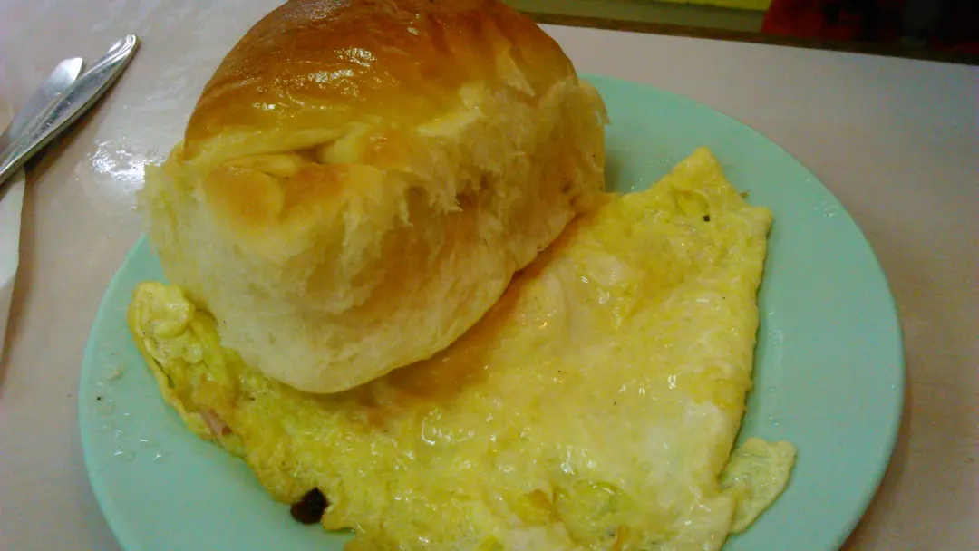 牛油餐包同火腿奄列