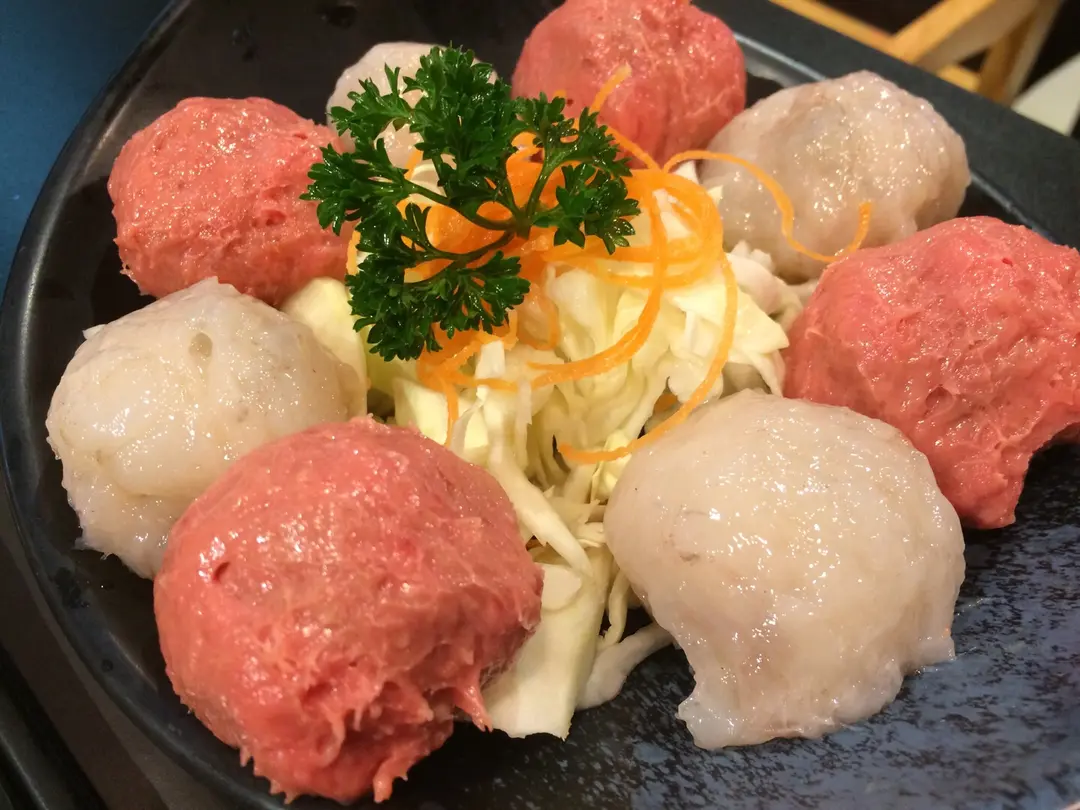 雙拼手打芝士牛丸及手打蝦丸