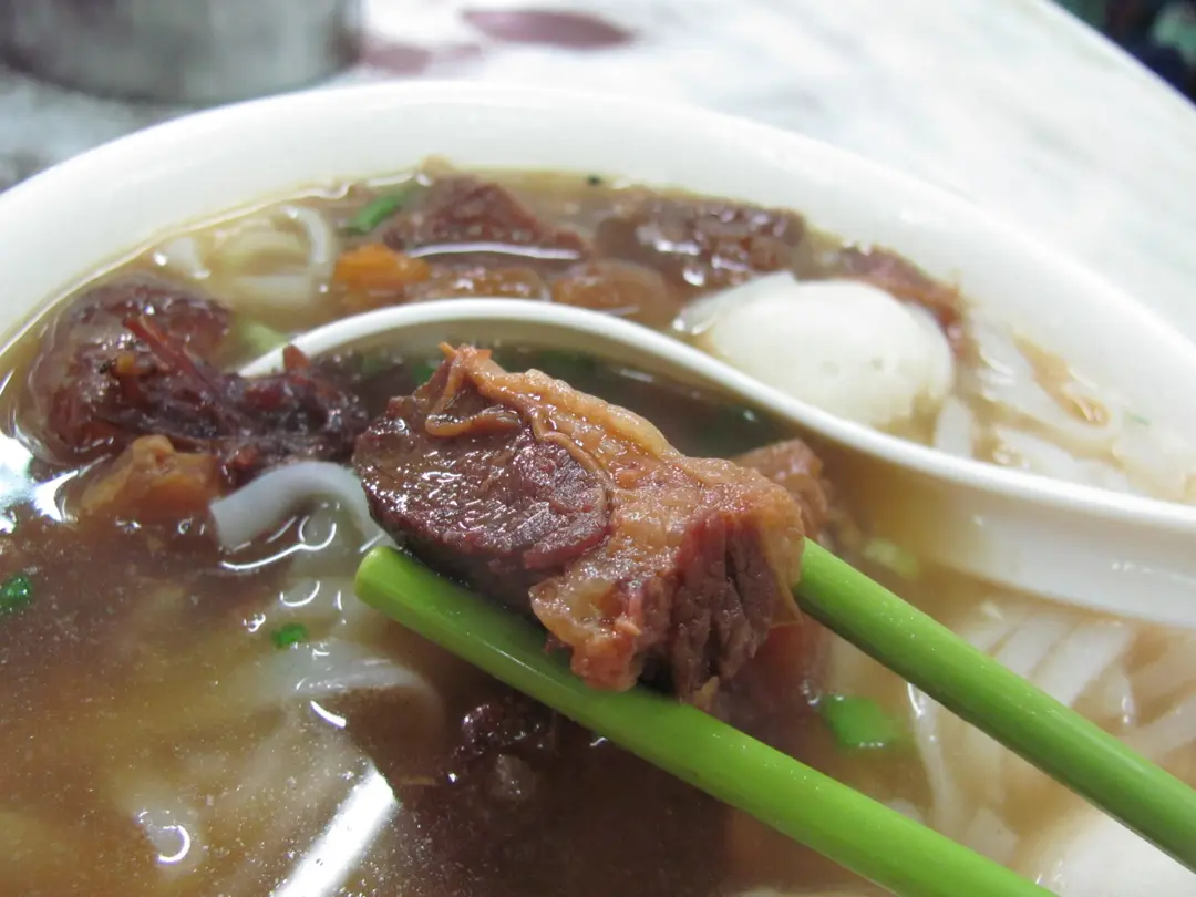 牛腩肉被浸煮至深啡色,非常入味