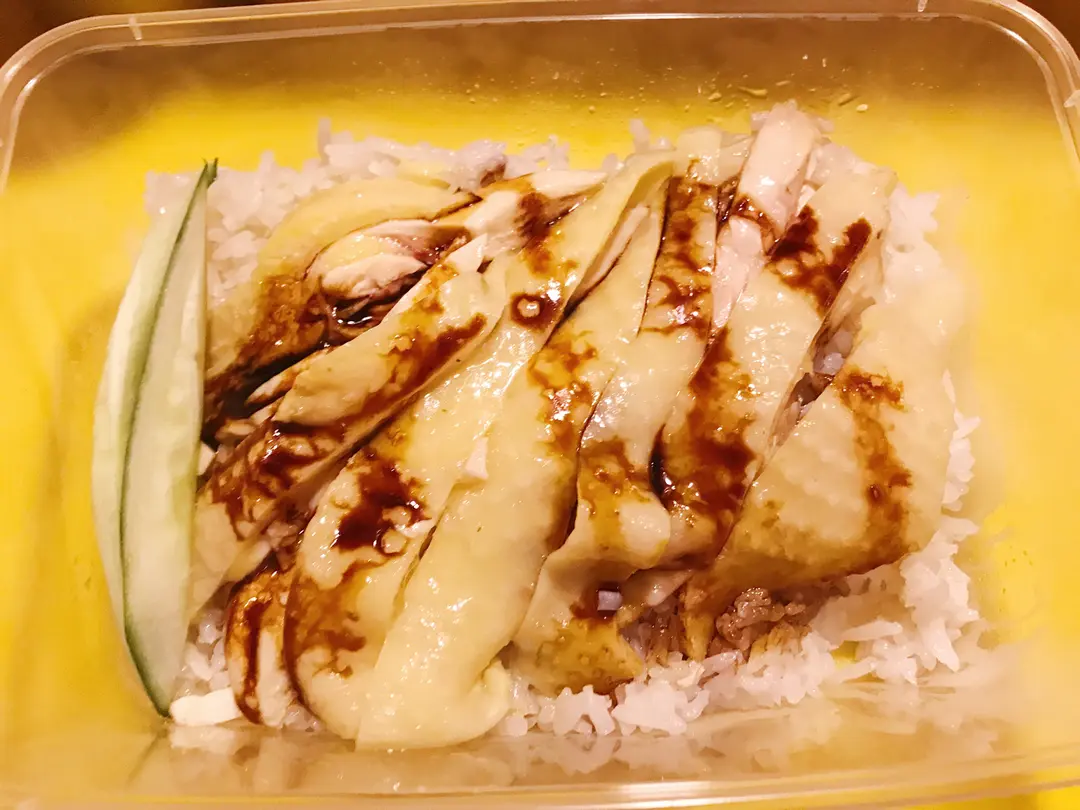 hainanese chicken rice with chicken leg