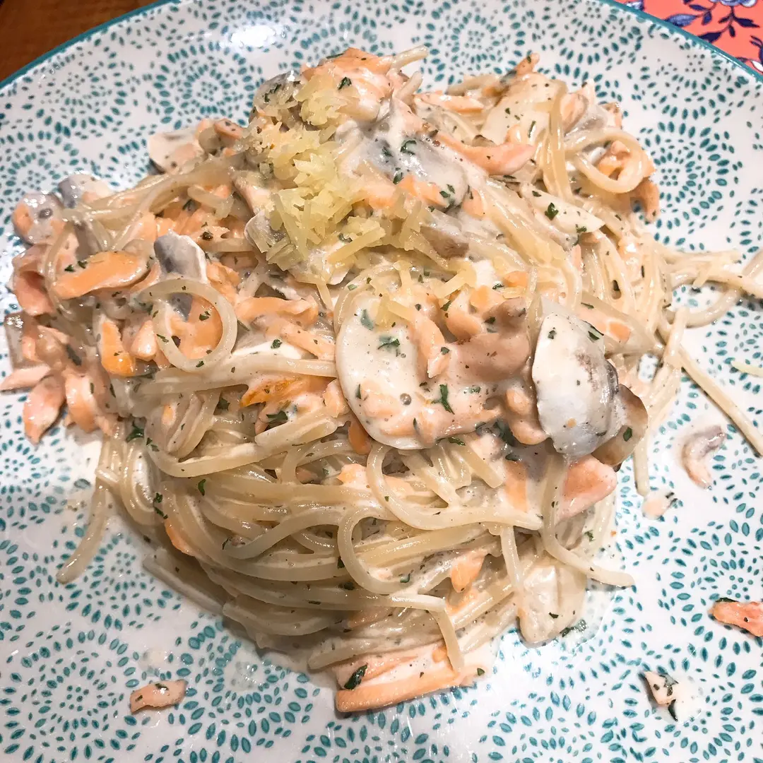 忌廉白菌三文魚意粉