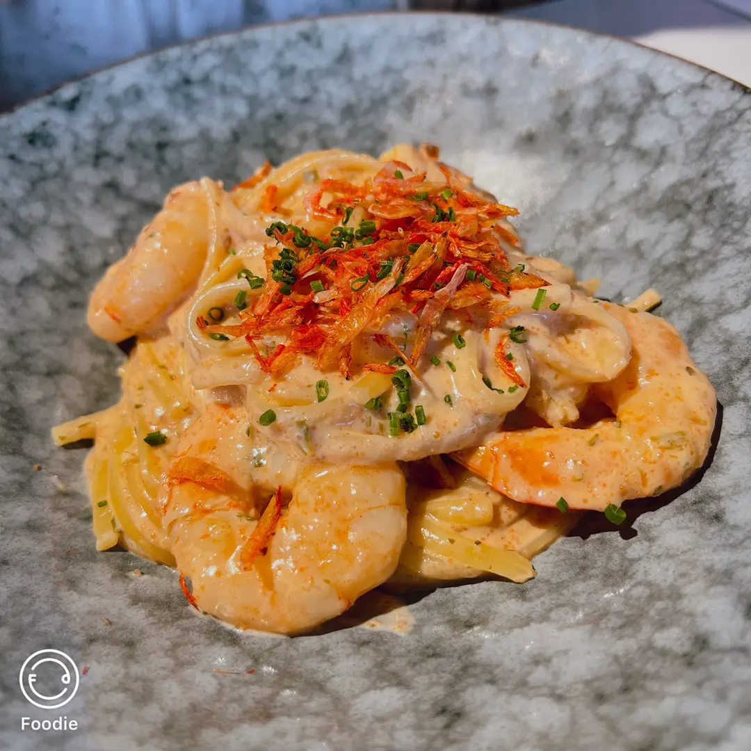 明太子奶油龍萵大蝦扁意粉