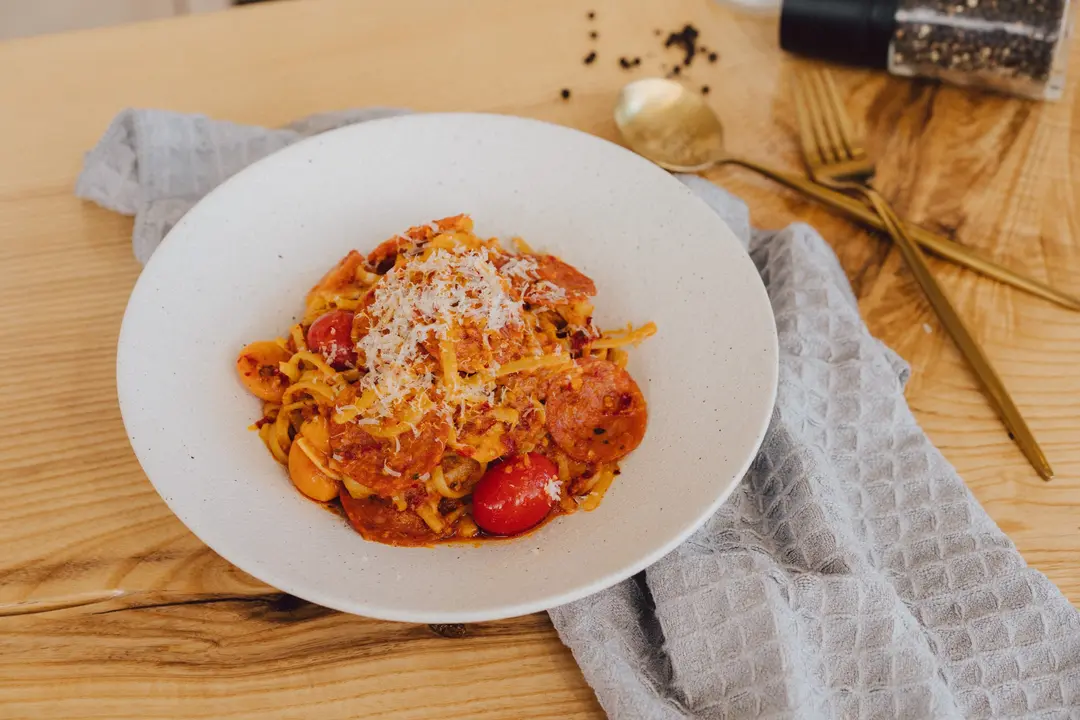 獨子蒜蕃茄蓉意大利辣肉腸醬扁意粉