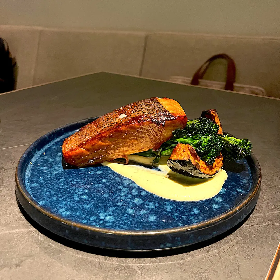 Roasted Norwegian salmon fillet with Japanese pumpkin and horseradish mayo