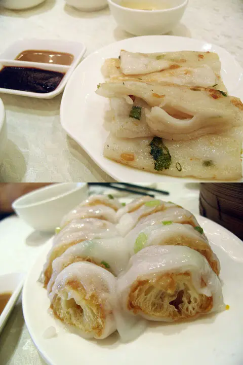 特式瑤柱煎腸粉(上圖)(特點), 金銀炸兩卷(下圗)(大點)