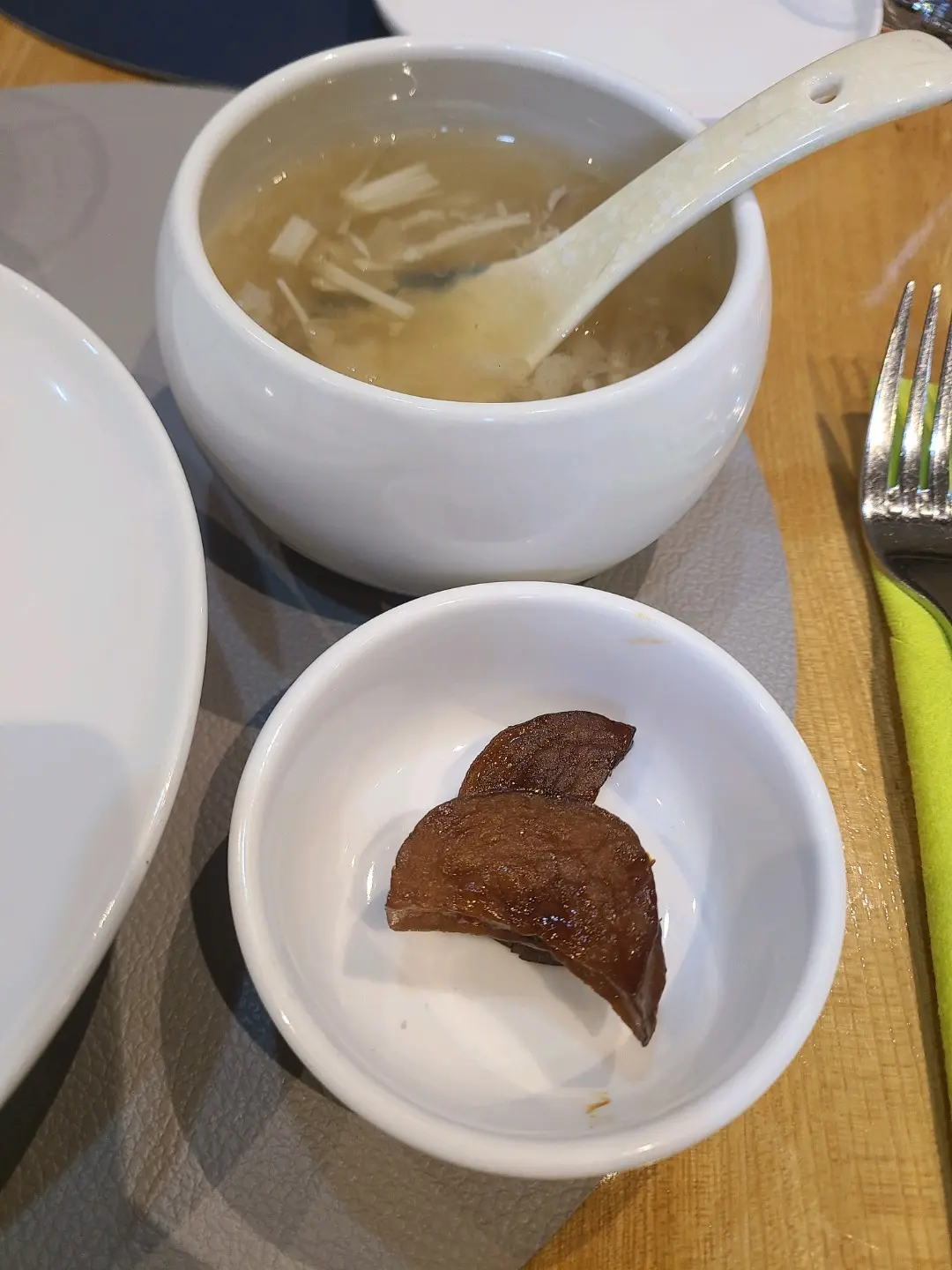 Chanterelles bamboo fungus vegan shark's fin soup, king oyster mushroom with homemade sauce