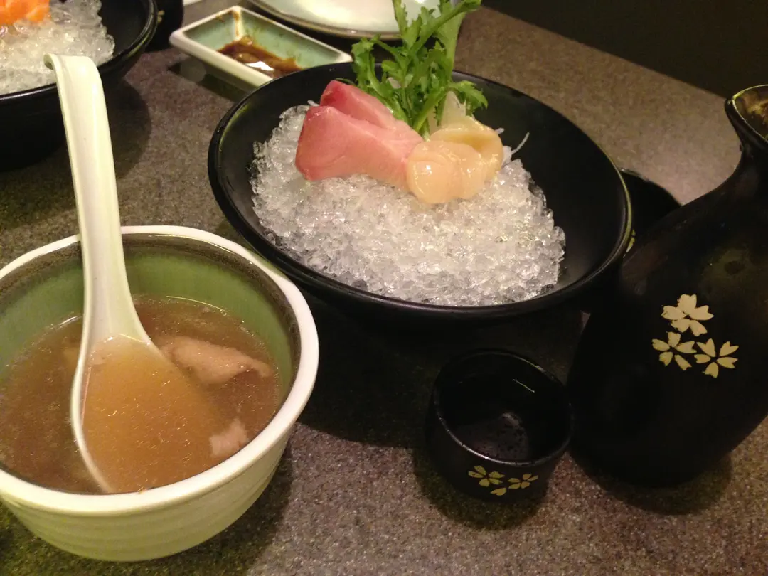 帶子刺身,人參雞湯