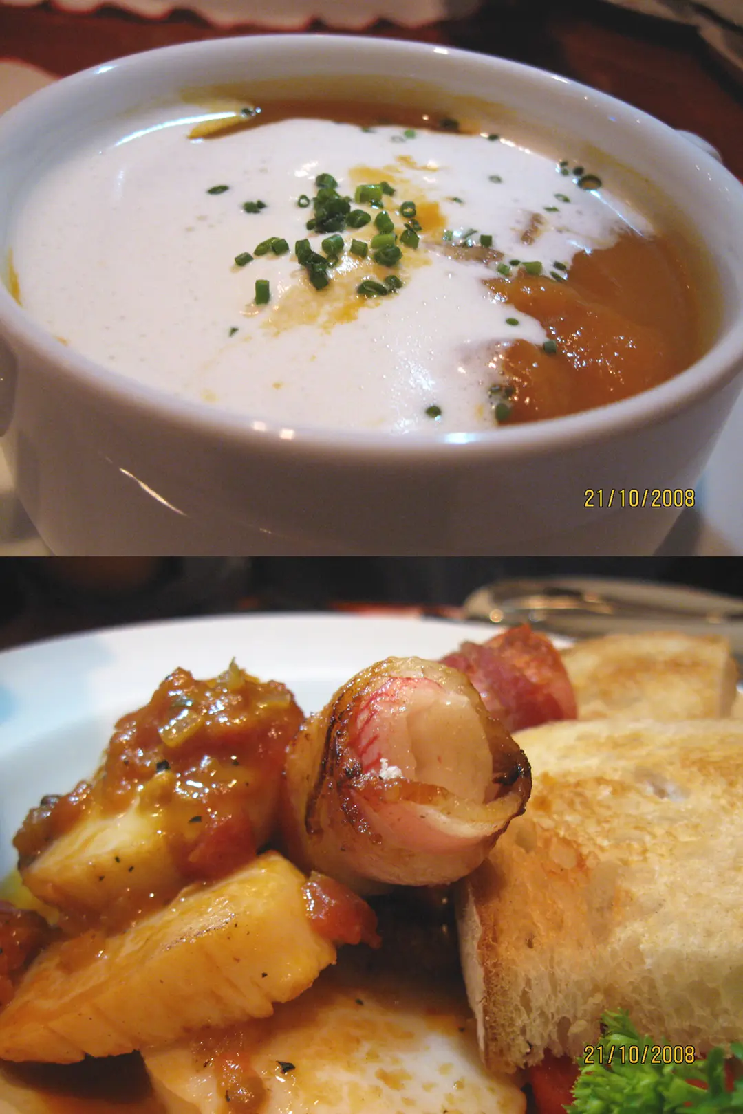 番茄忌廉湯+烤帶子及蟹柳煙肉卷