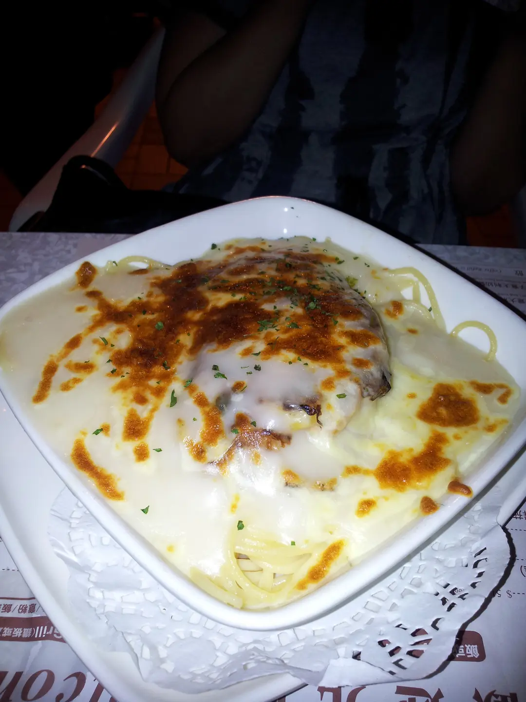 白汁芝士焗龍利柳意粉~味道不錯,選用細號意粉