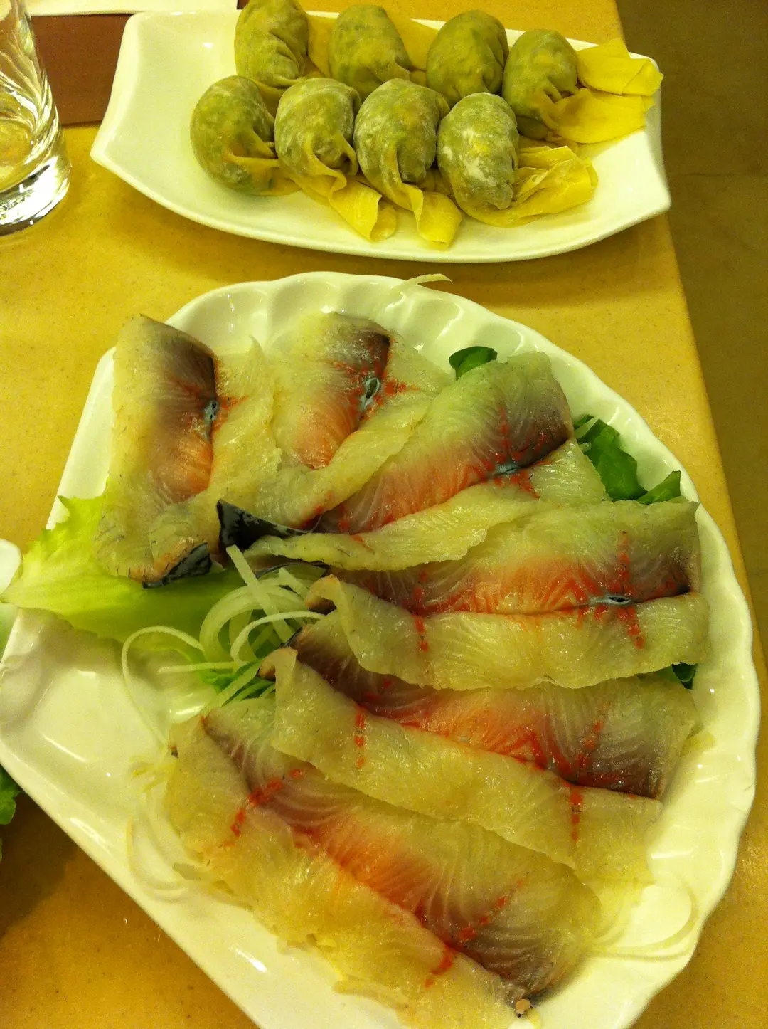 白鱔片(前), 西洋菜帶子餃(後)