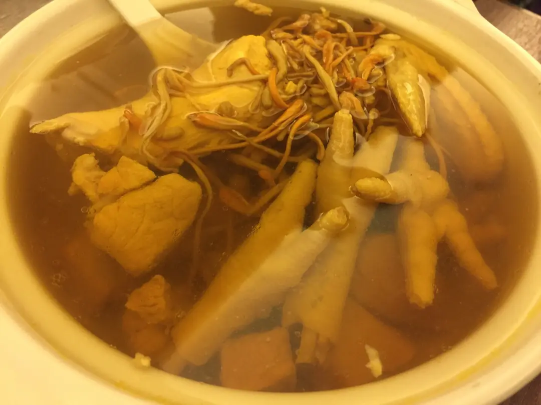 蟲草花燉雞湯,滿滿嘅湯料,非常足料,湯好鮮甜滋潤,真材實料原汁原味。