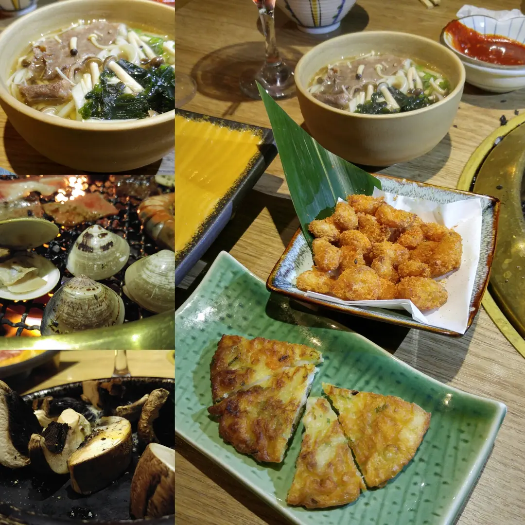 牛油蘑菇激香,蛤蜊燒熟後肉滲出鹹鮮又甜的汁。我最愛的和牛稻庭烏冬和海鮮餅也做得可圈可點。