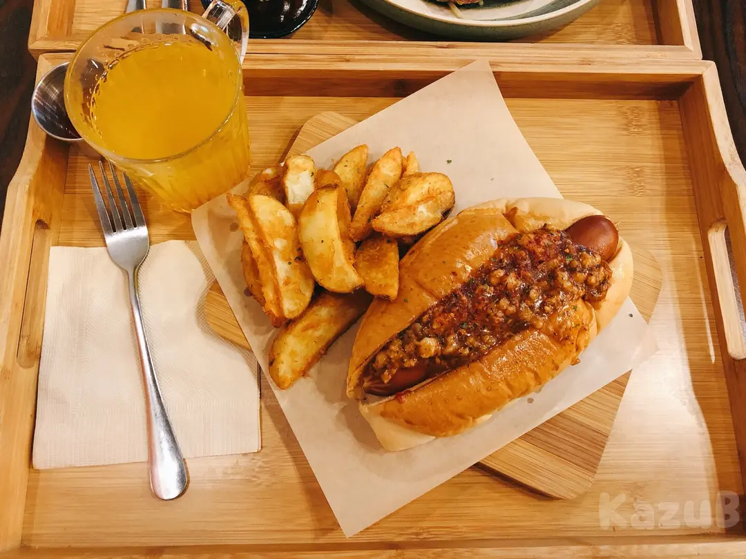 是辣的肉醬熱狗 配薯角+是日特飲: 百香果(熱)