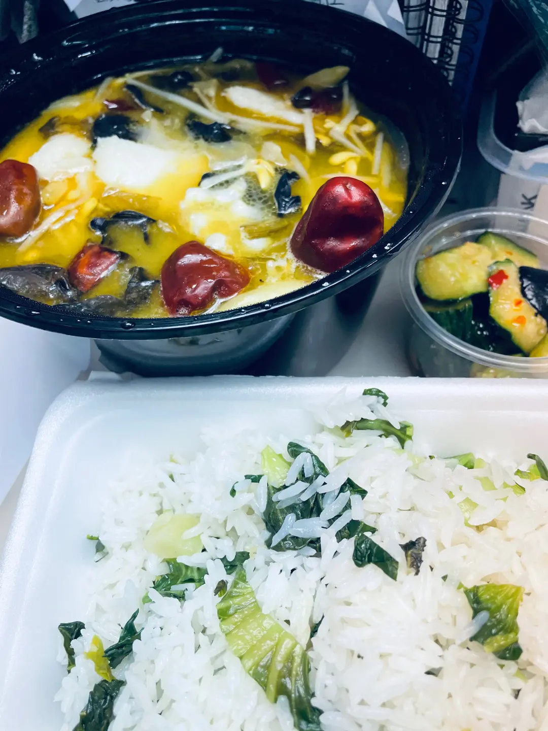 午餐酸菜魚配菜飯加可樂