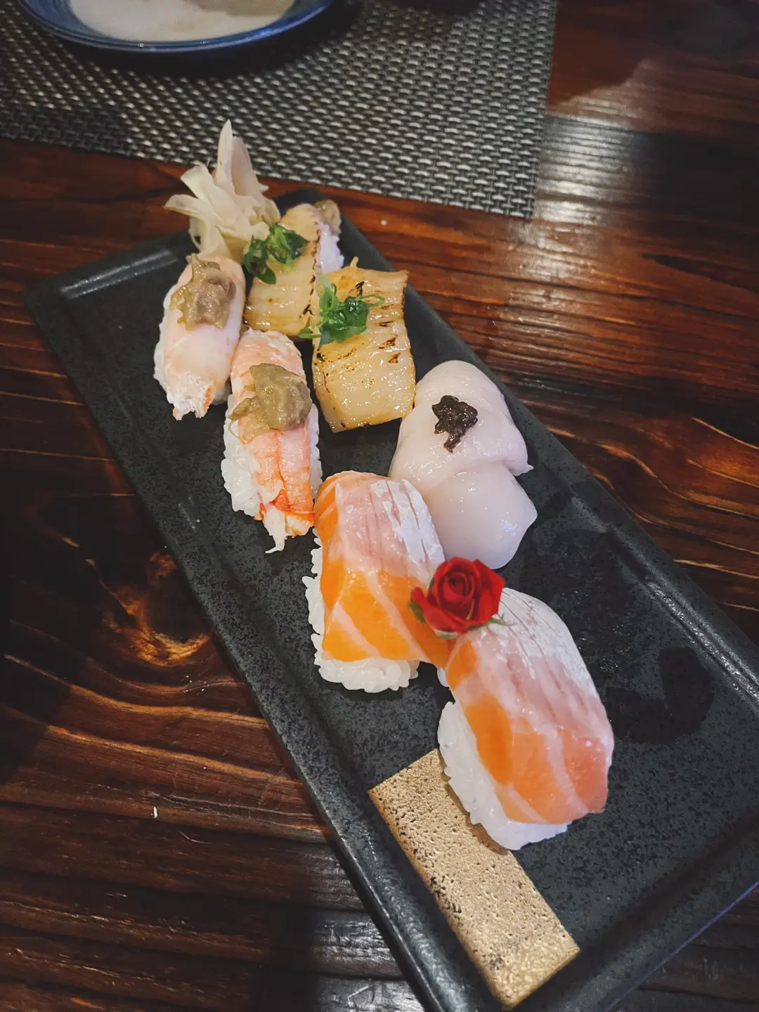 三文魚腩、黑松露帶子、火炙左口魚邊