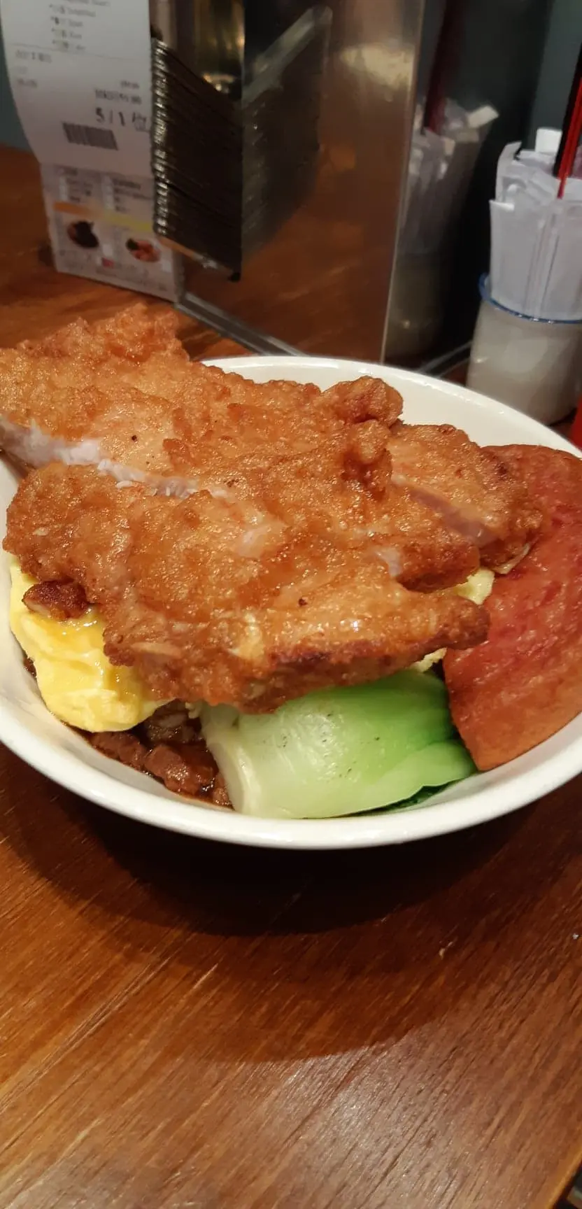秘製豬扒飯加厚午餐肉加炒滑蛋(肉燥汁)