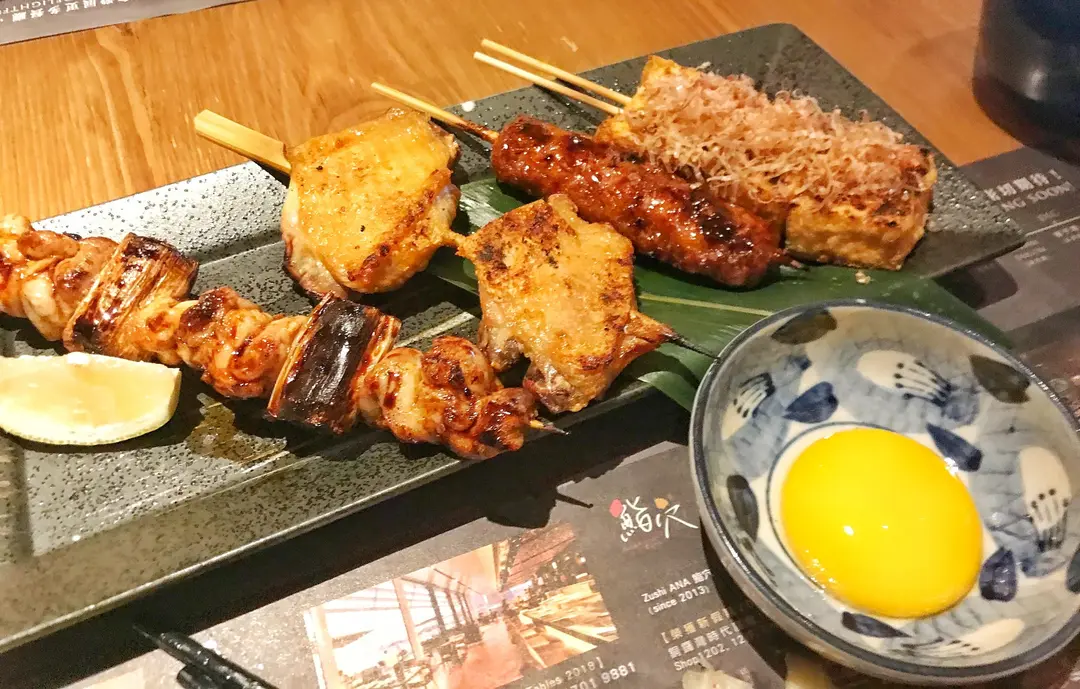 左起:雞肉大蔥,燒雞翼,免治雞肉,燒豆腐