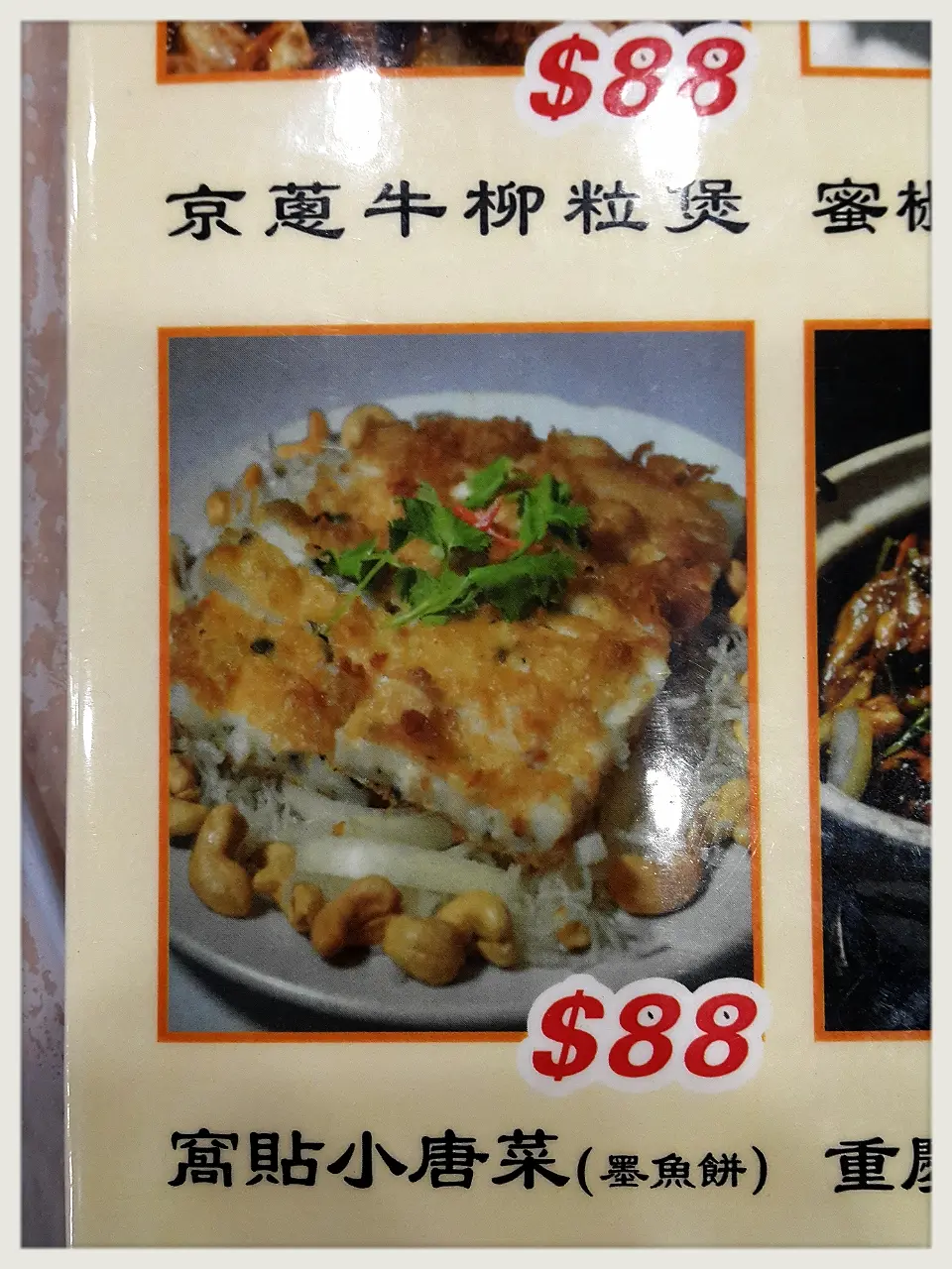 窩貼小唐菜(墨魚餅)($88)