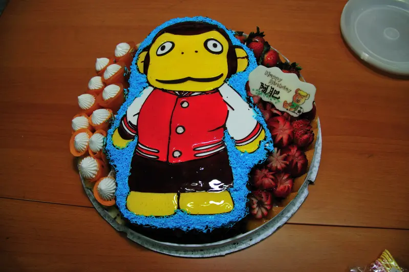 第一次訂平面立體蛋糕,好得意,入面海綿蛋糕好味,伴邊的芒果就被吹乾了,但已給男友一個驚喜, 哈哈