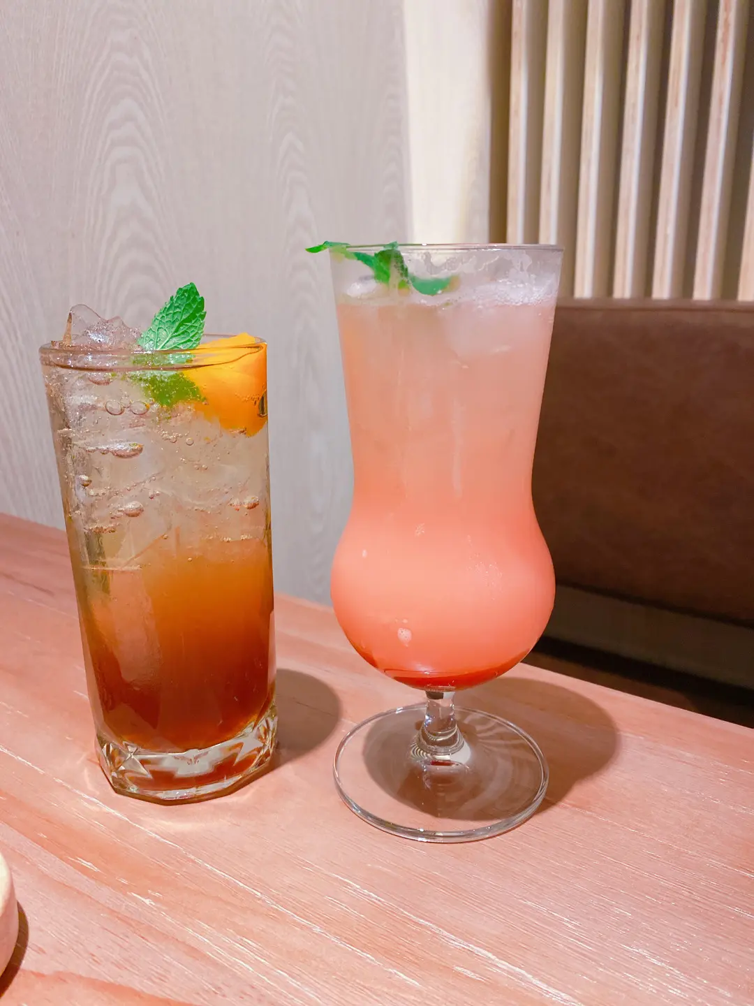 香桃紅茶梳打(左)草苺番石榴梳打(右)