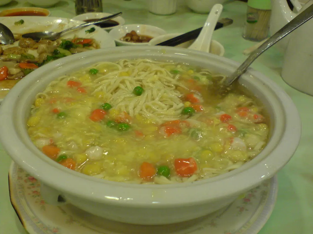 粟米素蝦粒湯伊麵