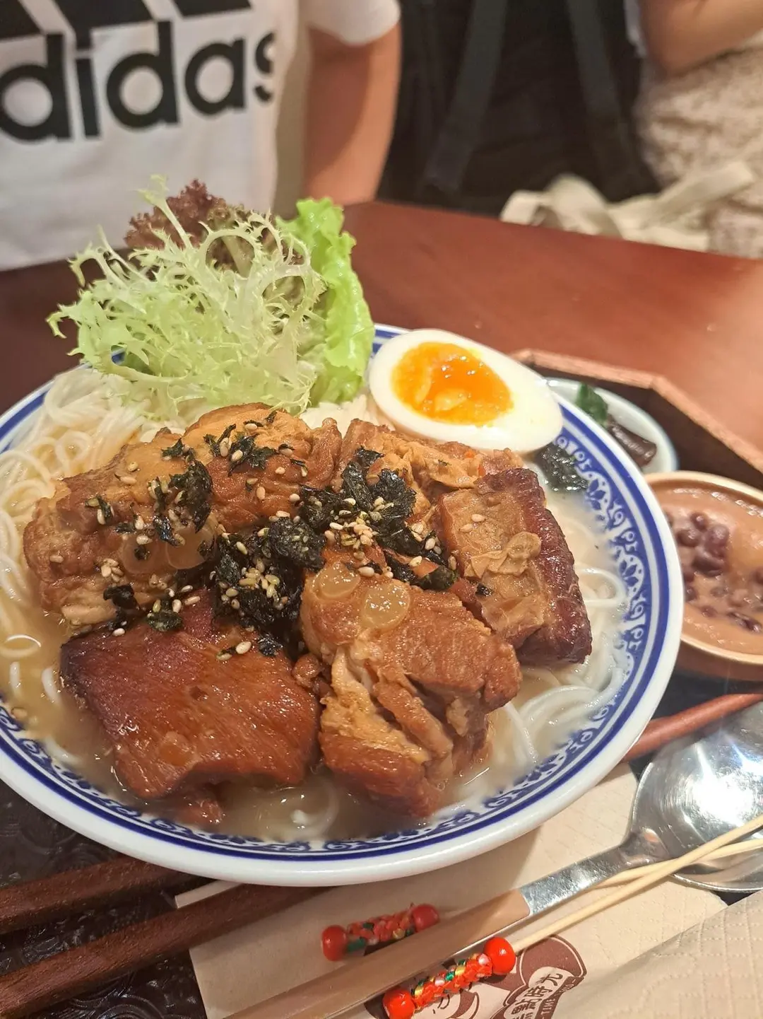 Soy Sauce Braised Black Sugar Pork Cartilage Yam Noodles with Soft-Boiled Egg